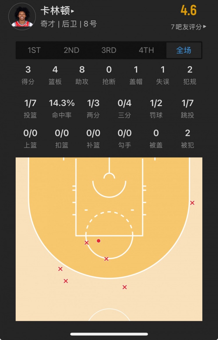 奇才14號(hào)秀 卡爾頓-卡林頓 登場(chǎng)25.5分鐘