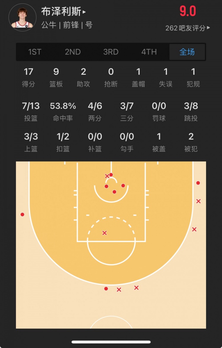 公牛11號(hào)秀 馬蒂斯-布澤利斯 登場(chǎng)29.8分鐘