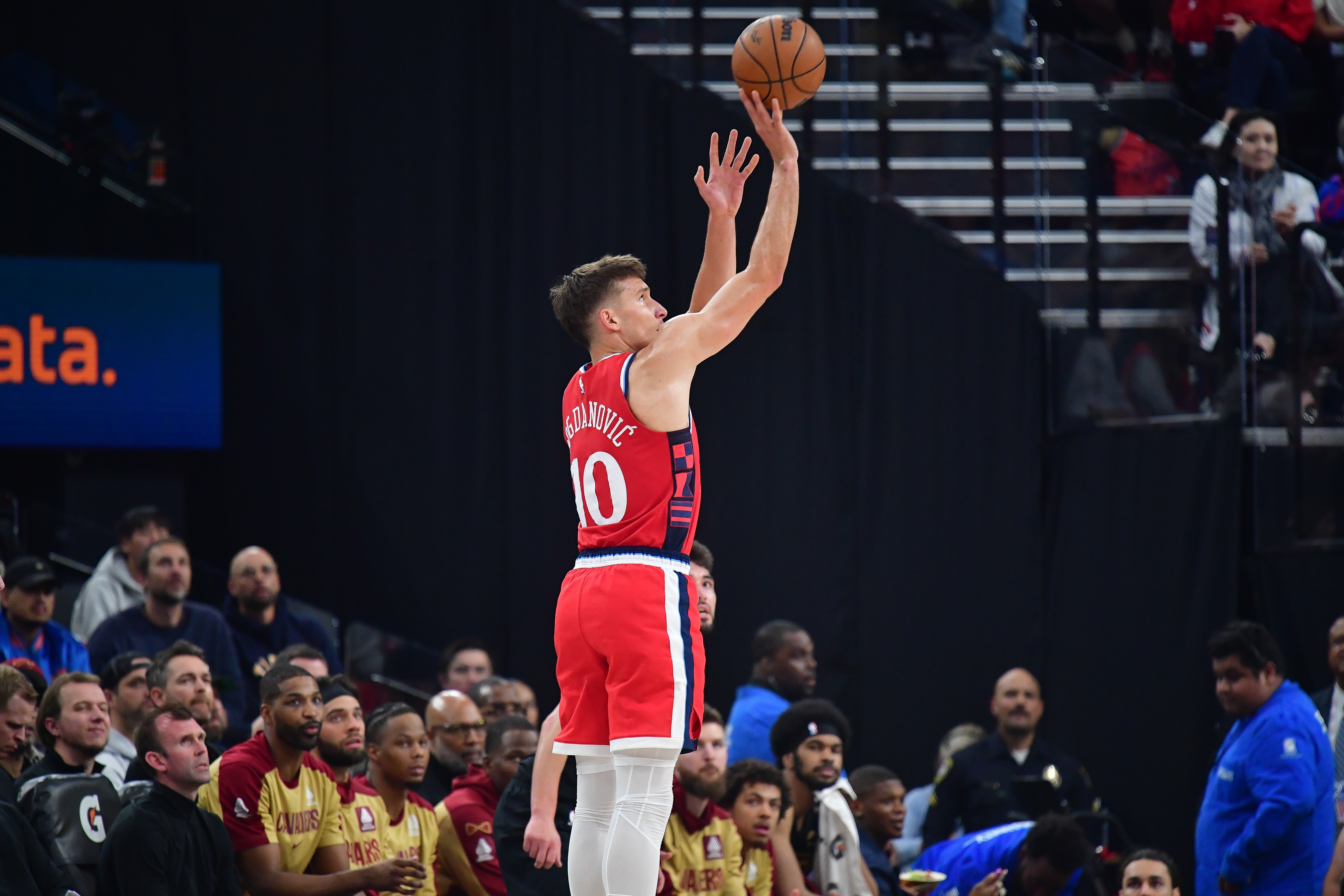 博格丹此役表現(xiàn)出色,進(jìn)攻端手感火熱彈無(wú)虛發(fā),在29分半的時(shí)間里,投籃8中8,三分球4中4,高效拿下20分4籃板7助攻1搶斷的數(shù)據(jù),正負(fù)值+19(全場(chǎng)最高)。