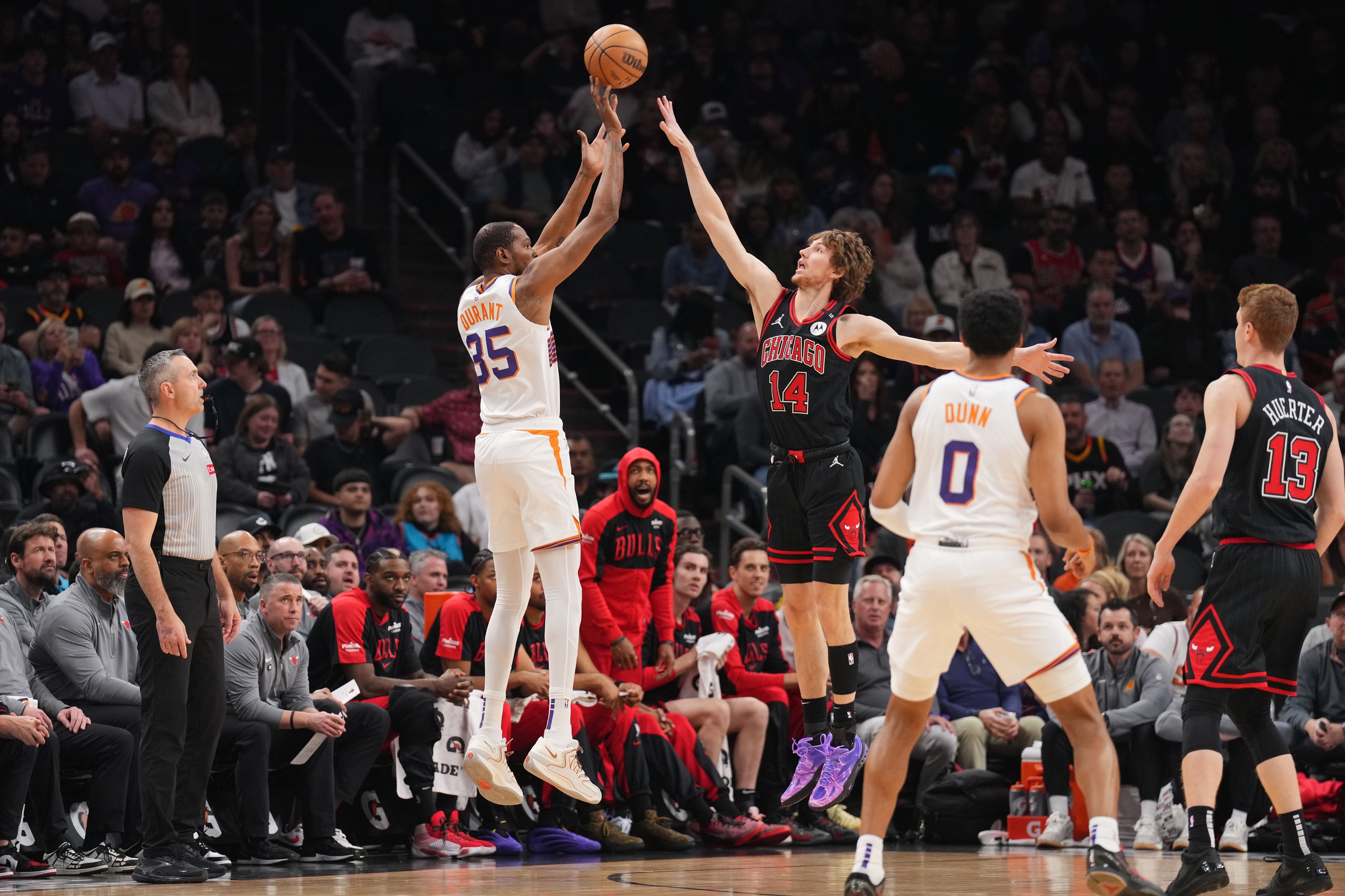 03月20日訊 NBA常規(guī)賽,太陽127-121擊敗公牛,對其達(dá)成11連勝。本場比賽過后,太陽與獨(dú)行俠戰(zhàn)績持平,同為33勝37負(fù),太陽憑借交手戰(zhàn)績優(yōu)勢(3勝1負(fù))反超對手,升至西部第十,重回附加賽區(qū)。 本文標(biāo)簽: 籃球 NBA 太陽 杜蘭特 布克