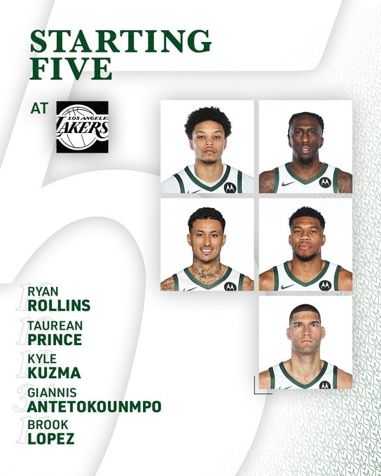 雄鹿本場比賽的首發(fā)陣容已經出爐,分別是:羅林斯、普林斯、庫茲馬、字母哥、大洛。
