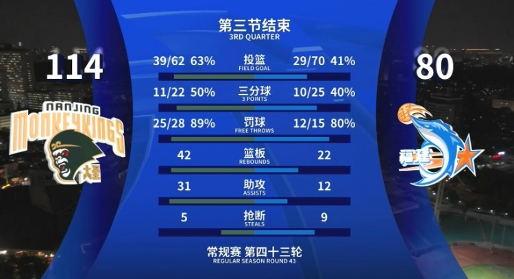 3月21日訊 CBA常規(guī)賽,同曦三節(jié)過后114-80大比分領(lǐng)先福建。