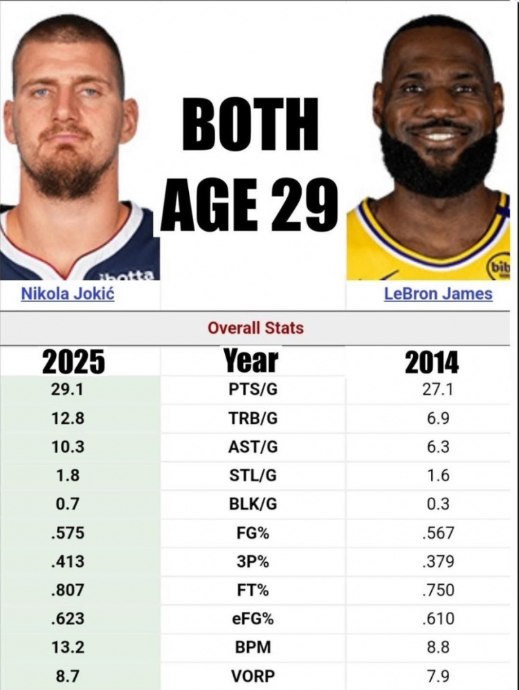 29歲約基奇場均29.1分12.8板10.3助1.8斷 各項(xiàng)數(shù)據(jù)皆>同期詹姆斯