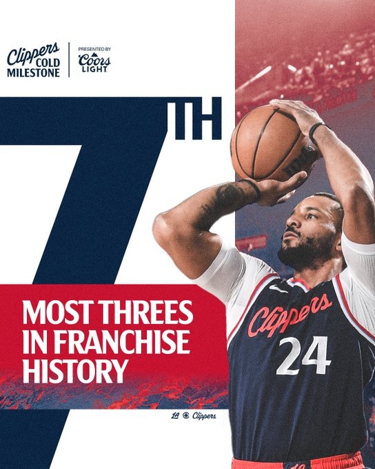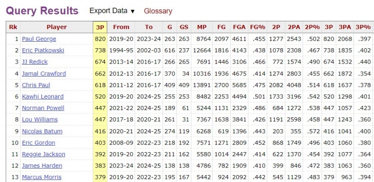 根據(jù)數(shù)據(jù)統(tǒng)計(jì),加上已經(jīng)投進(jìn)的1個(gè)三分,鮑威爾快船生涯三分?jǐn)?shù)來(lái)到448記,他超越路威,獨(dú)居隊(duì)史三分榜第7位。