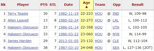 阿門(mén)這樣一來(lái),阿門(mén)(22歲51天)成為了火箭隊(duì)史上單場(chǎng)送出7+搶斷最年輕的球員,此前最年輕紀(jì)錄是特里-蒂格的22歲223天。