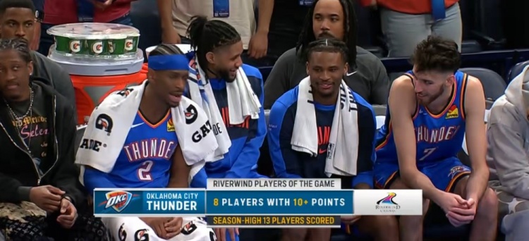 3月22日訊 今日NBA常規(guī)賽,雷霆141-106大勝黃蜂。本場比賽雷霆全員發(fā)揮,全隊(duì)共有13個(gè)人有得分入賬,創(chuàng)本賽季新高,其中更是有8人得分上雙! 本文標(biāo)簽: 籃球 NBA 雷霆