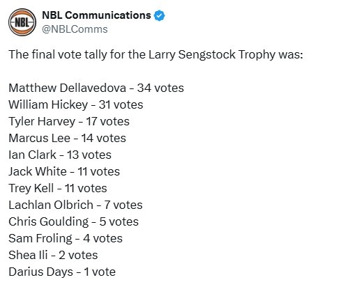 3月23日訊 本賽季NBL總決賽今天落下大幕,伊拉瓦拉老鷹在第五場114比104擊敗墨爾本聯(lián),以3比2的大比分奪得總冠軍。不過,墨爾本聯(lián)球員、前騎士后衛(wèi)、34歲的德拉維多瓦奪得總決賽MVP。總決賽5場大戰(zhàn)、德拉維多瓦場均14分4籃板6.2助攻。在投票中,德拉維多瓦獲得34票,山西男籃緋聞外援特雷-凱爾獲得11票。 本文標簽: 籃球 NBA 騎士