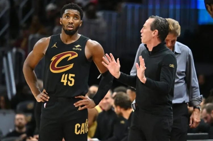 這回4連敗,追根溯源也是米切爾的復(fù)出。他此前在對(duì)陣灰熊時(shí)缺席過(guò)一場(chǎng),然后復(fù)出,但是復(fù)出后4場(chǎng)不在狀態(tài),對(duì)陣太陽(yáng)一場(chǎng)更是荒腔走板到18投僅有2中,僅得7分。就是復(fù)出的頭2場(chǎng),米切爾也是狀態(tài)不佳,分別只有28投9中,和18投5中。盡管米切爾賽后攬責(zé):“輸球都怪我,當(dāng)領(lǐng)袖球員表現(xiàn)不佳時(shí),失利也就在所難免了?!钡浊袪柸绱?,騎士奈若何?