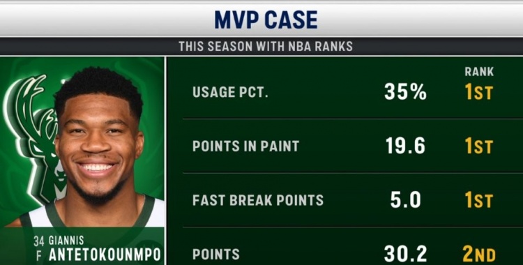 3月23日訊 今天上午10點(diǎn),雄鹿將在客場挑戰(zhàn)國王。比賽開始前,電視轉(zhuǎn)播商列舉了字母哥競爭本賽季MVP的優(yōu)勢,賽季至今,字母哥的使用率35%,聯(lián)盟第1,場均禁區(qū)得分19.6分,聯(lián)盟第1,場均快攻得分5分,聯(lián)盟第1,場均30.2分,聯(lián)盟第2。 本文標(biāo)簽: 籃球 NBA 雄鹿 字母哥