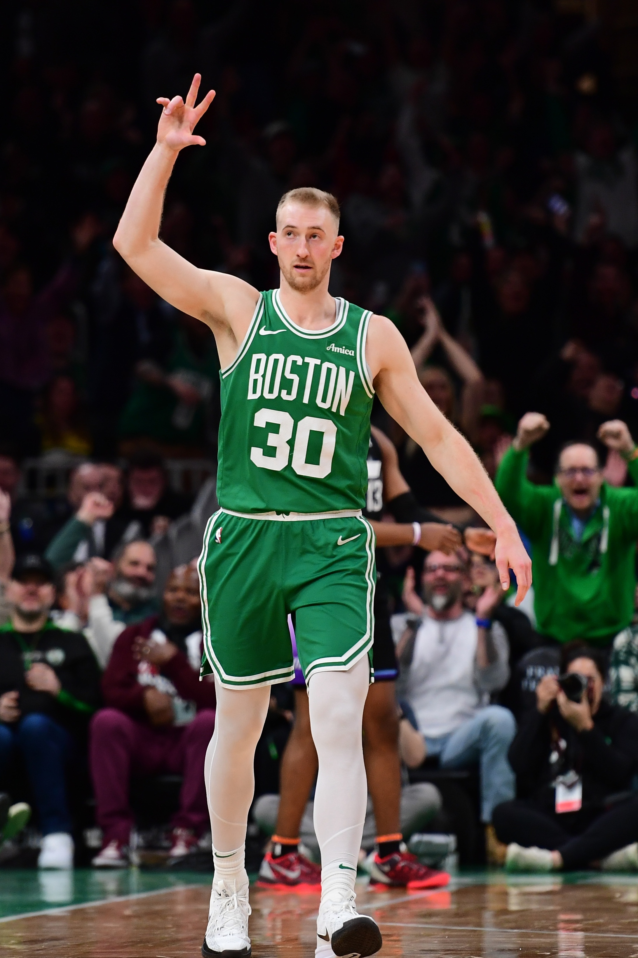 凱爾特人球員豪澤先發(fā)出戰(zhàn)表現(xiàn)出色,他在三分線外手感相當(dāng)出色。他出場38分37秒,11投8中(三分10中8),拿到24分3籃板1蓋帽,正負(fù)值+6。