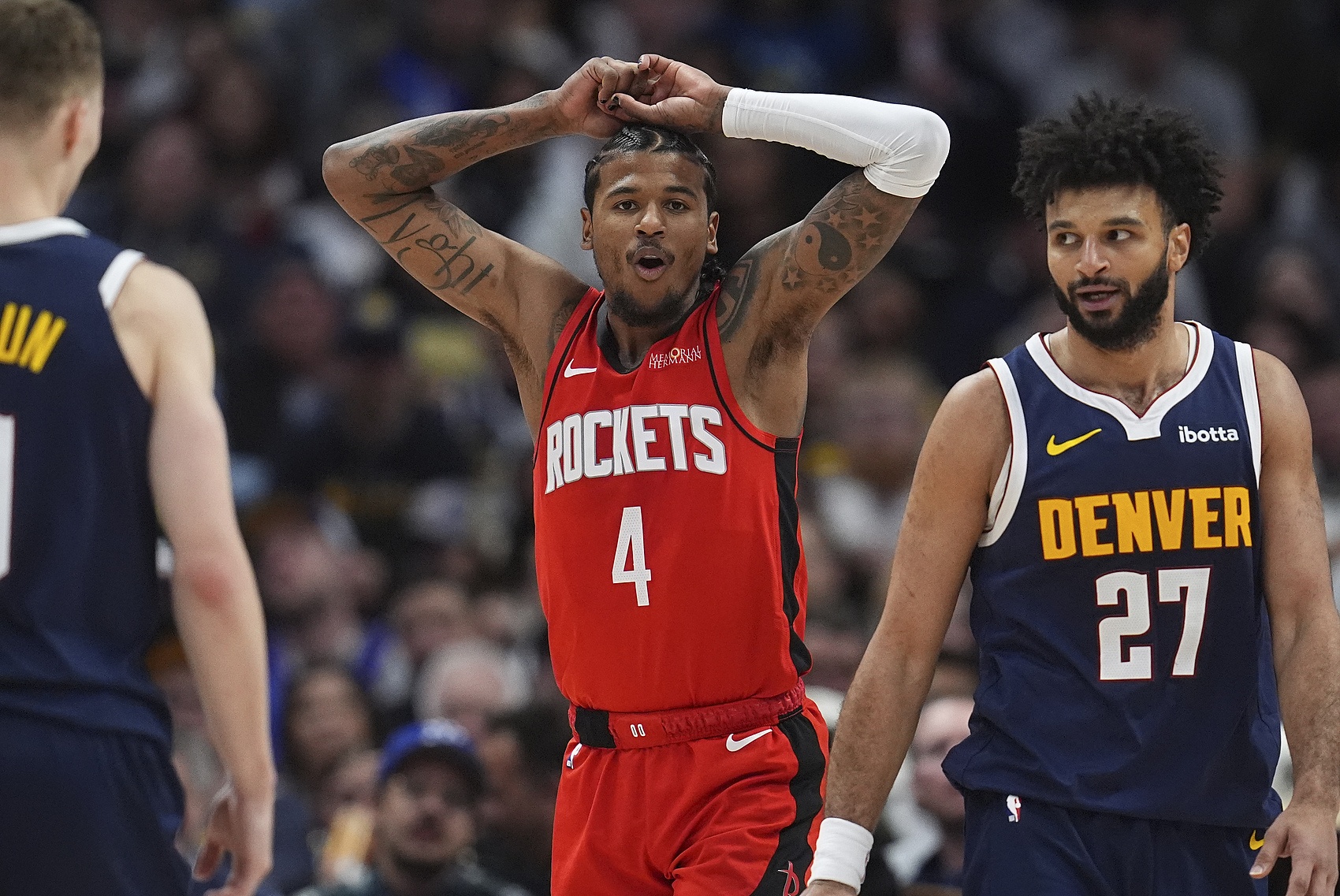 NBA常規(guī)賽,火箭116-111不敵掘金。此役,火箭球星杰倫-格林全場(chǎng)出戰(zhàn)35分50秒,22投8中(三分12中3)、罰球14中11,空砍全隊(duì)最高30分,外加2籃板5助攻,正負(fù)值-6。至此,杰倫-格林本賽季砍30+火箭全勝的紀(jì)錄告破,戰(zhàn)績(jī)來(lái)到10勝1負(fù)。 本文標(biāo)簽: 籃球 NBA 火箭 杰倫-格林