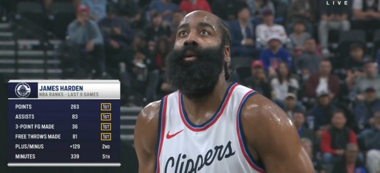 過去9場(chǎng)哈登263分、83助、命中36記三分、罰中81球皆聯(lián)盟第一;總正負(fù)值+129第二,出戰(zhàn)339分鐘第五 本文標(biāo)簽: NBA 籃球 快船 哈登