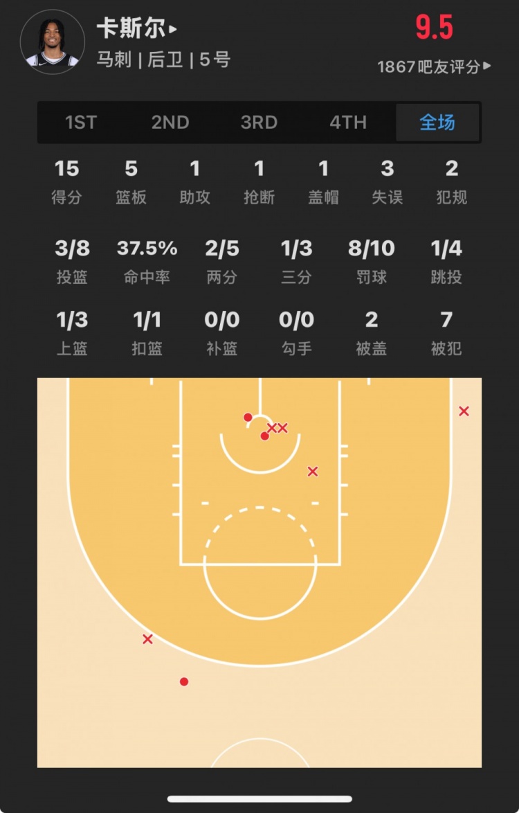 馬刺4號(hào)秀 斯蒂芬-卡斯?fàn)?登場(chǎng)19.8分鐘