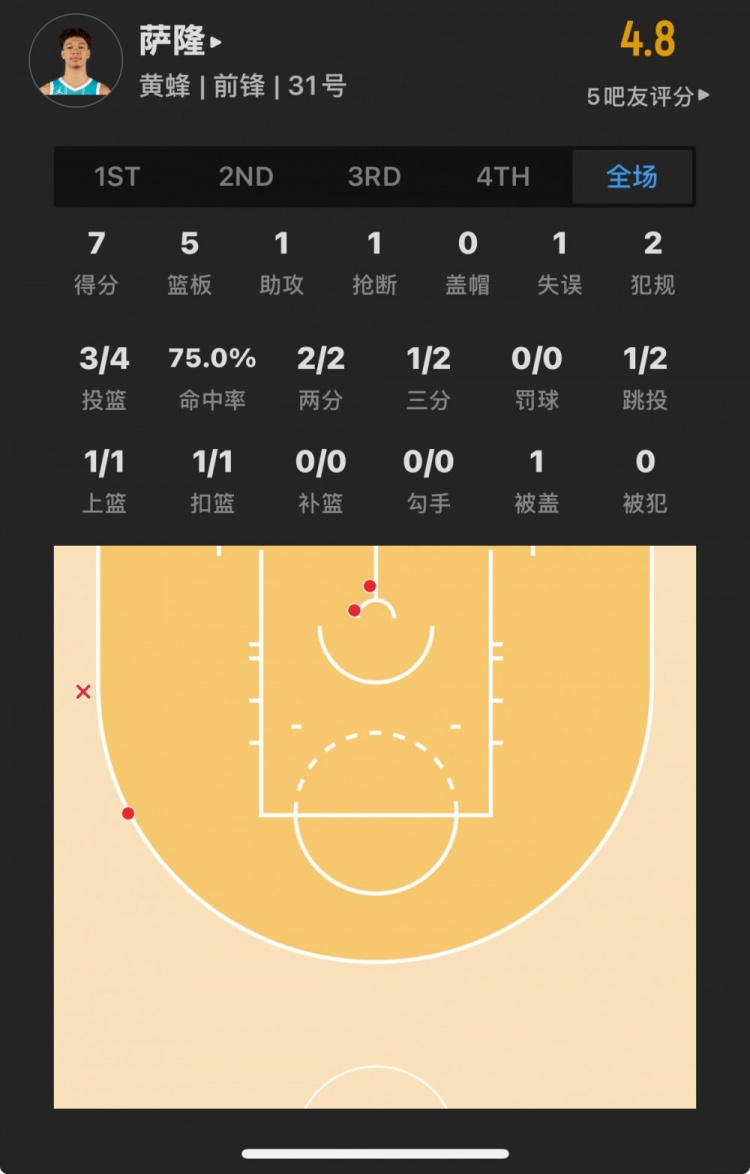 黃蜂6號(hào)秀 提賈尼-薩隆 登場(chǎng)24.5分鐘