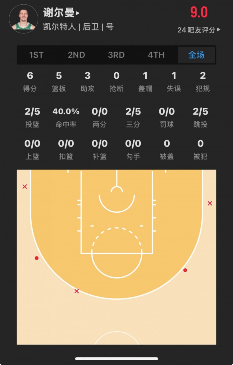 凱爾特人30號(hào)秀 貝勒-謝爾曼 登場(chǎng)26.0分鐘