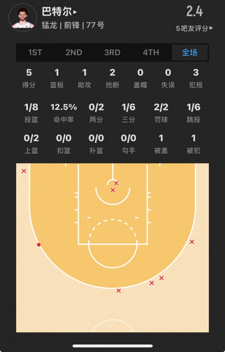 猛龍落選秀 賈米森-巴特爾 登場(chǎng)21.9分鐘