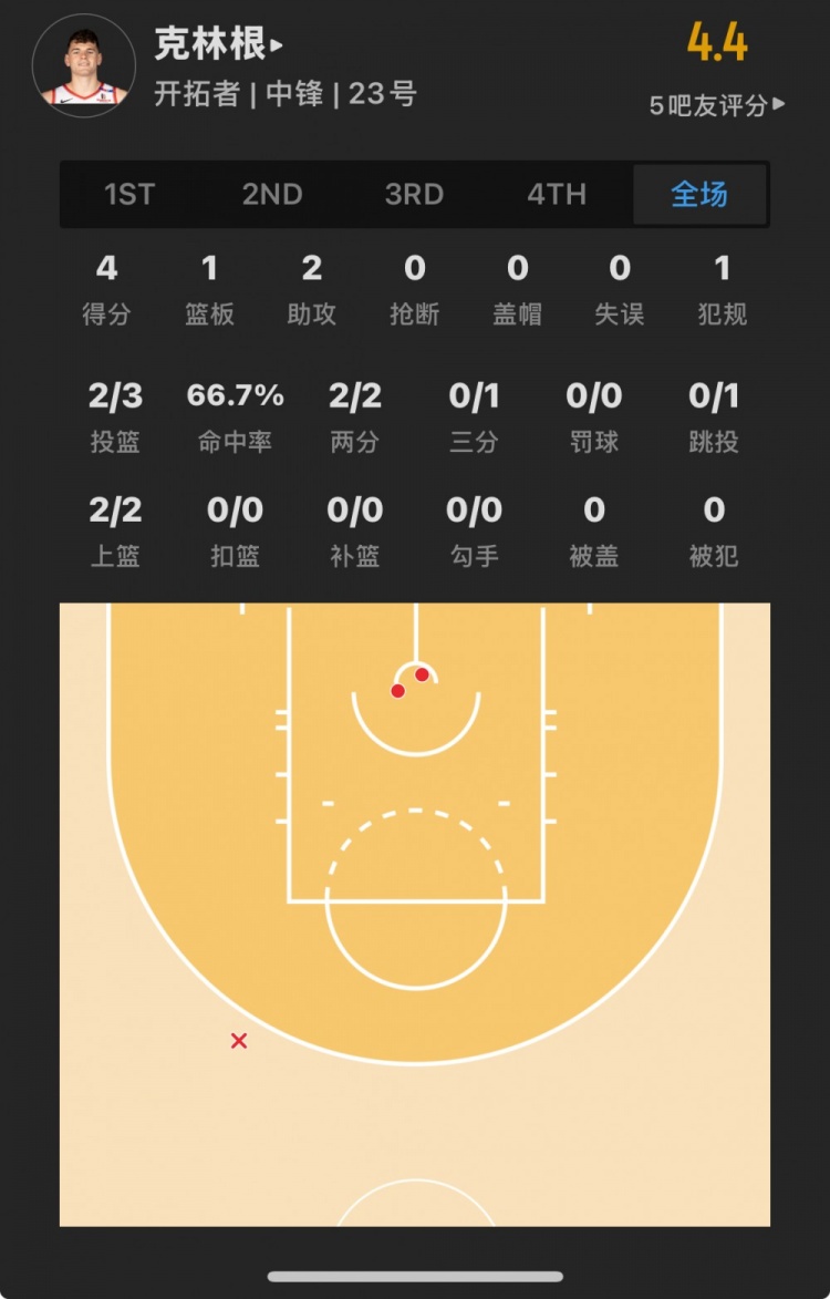 76人落選秀 亞歷克斯-里斯 登場(chǎng)21.3分鐘