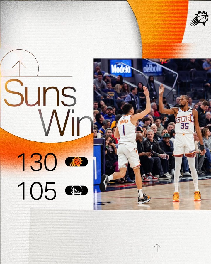 2月1日訊 NBA常規(guī)賽,太陽客場130-105擊敗勇士。賽后太陽曬出贏球海報(bào),杜蘭特和布克登上封面。布克出戰(zhàn)35分鐘,23投12中,三分11中5,罰球3中2,得31分5板11助1斷。正負(fù)值為+28全隊(duì)最高。杜蘭特本場出戰(zhàn)29分21秒,13投6中(三分9中5)、罰球4中2,拿下19分6籃板3助攻1搶斷1蓋帽。 本文標(biāo)簽: NBA 籃球 太陽 布克 杜蘭特