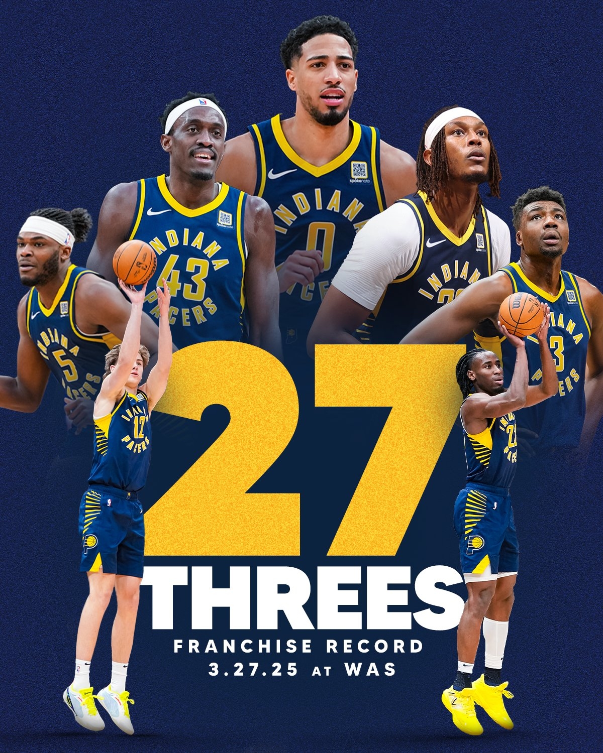 此役,步行者全隊命中27記三分,創(chuàng)造隊史紀錄,此前最多是23記三分。