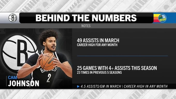 3月29日訊 今天上午7:30,籃網(wǎng)對陣快船。轉(zhuǎn)播方曬出一組數(shù)據(jù),籃網(wǎng)球員卡梅隆-約翰遜在3月已送出49次助攻、場均4.5次,這2項數(shù)據(jù)是他個人生涯的單月新高。同時,黃忠本賽季已有25次單場助攻4+,而他此前5個賽季合計僅做到23次。 本文標(biāo)簽: 籃球 NBA 籃網(wǎng)