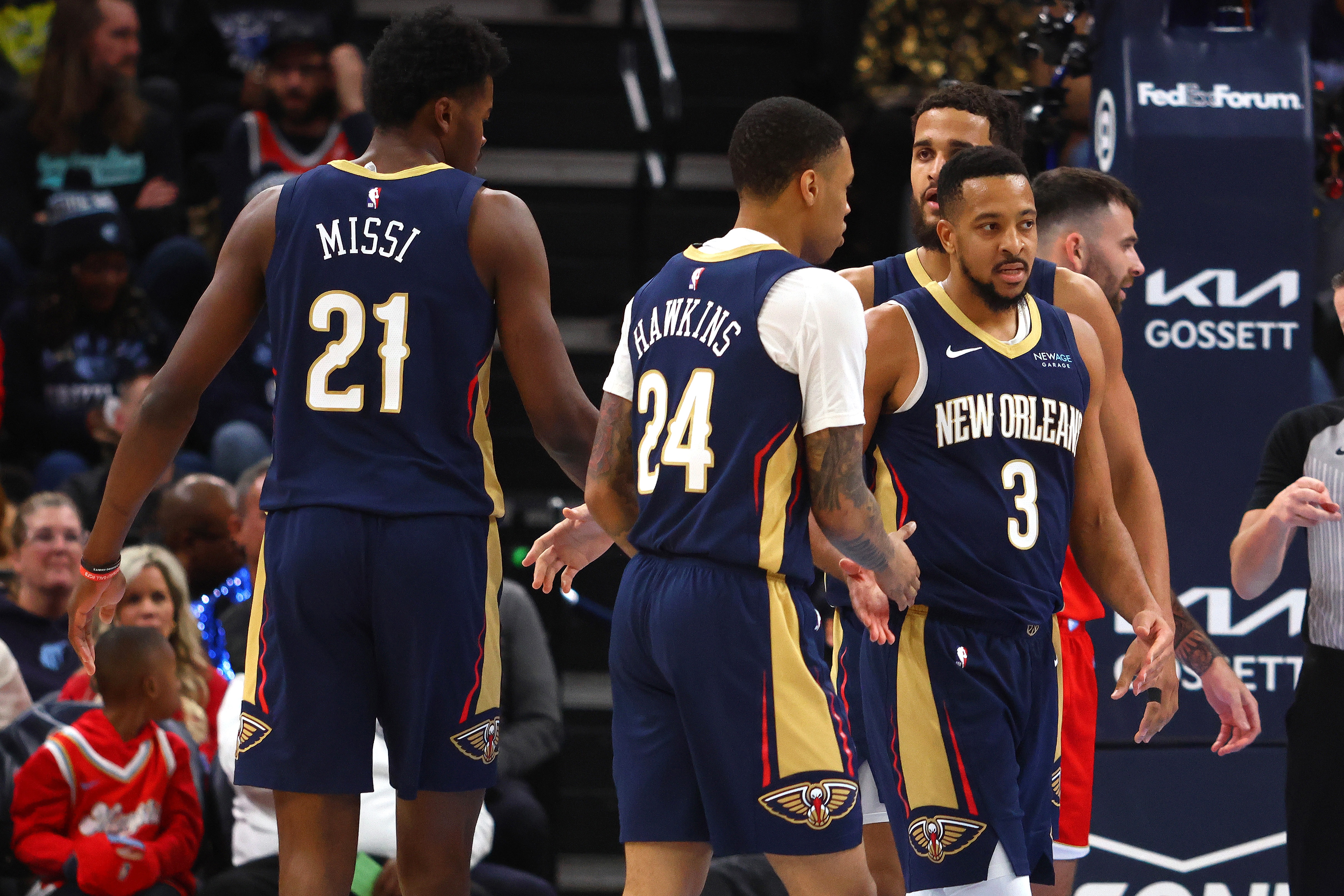 新奧爾良——在伊夫-米西職業(yè)生涯的第二場(chǎng)比賽后,他的隊(duì)友們興奮不已,充滿(mǎn)活力。