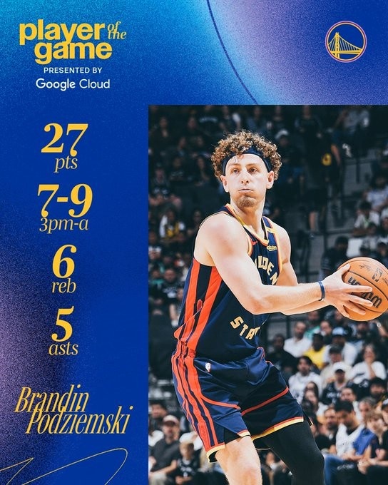 賽后,勇士官方發(fā)布波杰姆斯基本場(chǎng)數(shù)據(jù)海報(bào),并寫(xiě)道:“生涯之夜!本場(chǎng)最佳球員!”