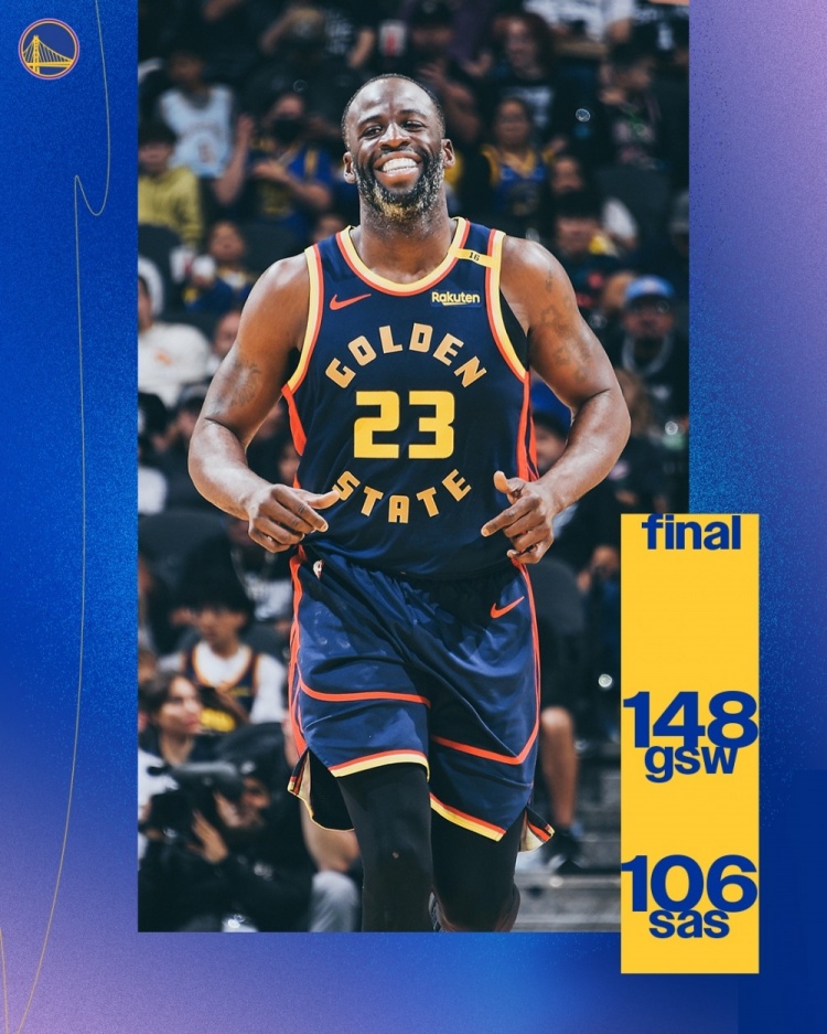 3月31日訊 NBA常規(guī)賽,勇士148-106大勝馬刺。賽后勇士官方贏球海報(bào)封面人物給到了追夢格林。本場比賽,追夢出戰(zhàn)21分鐘,投籃9中6,三分4中2,拿下14分5籃板2助攻1搶斷,失誤1次,正負(fù)值+12。 本文標(biāo)簽: 籃球 NBA 勇士 追夢