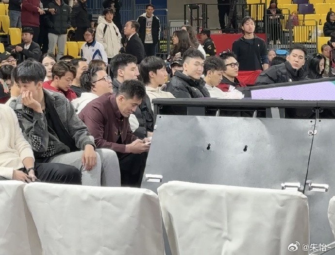此前眼部受傷的郭艾倫、沒有通過(guò)體測(cè)的丁彥雨航也一同出現(xiàn)了在場(chǎng)邊觀戰(zhàn)。