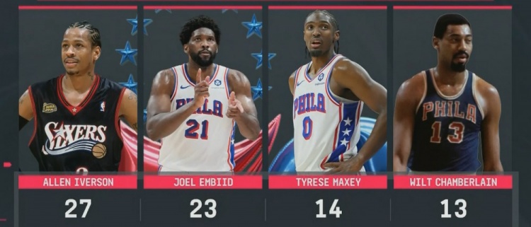 馬克西連續(xù)14場得25+ 超越張伯倫上升至76人隊史第三&僅次AI大帝