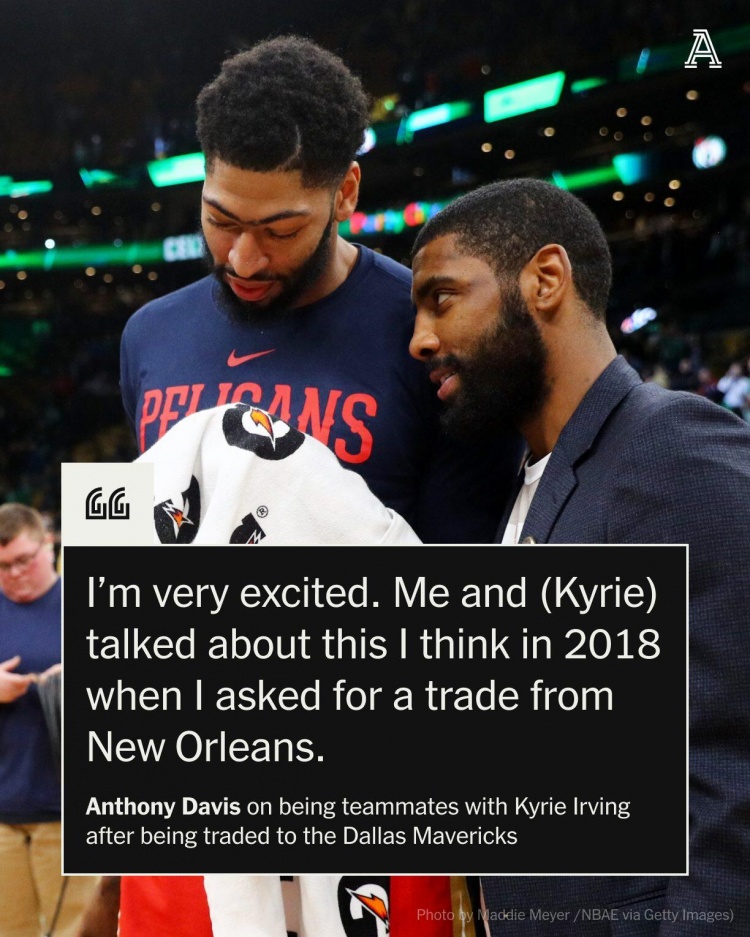 談到和歐文搭檔,濃眉說道:“我感覺很興奮。我2018年在鵜鶘申請(qǐng)交易的時(shí)候就和歐文談?wù)撨^這件事。我們一直想一起打球?,F(xiàn)在我們有機(jī)會(huì)這樣做了。”