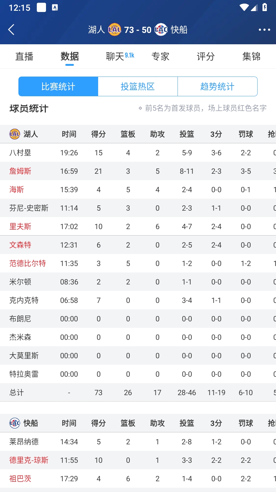 詹姆斯老當(dāng)益壯21分&湖人全民皆兵 湖人半場(chǎng)轟73分領(lǐng)先快船23分