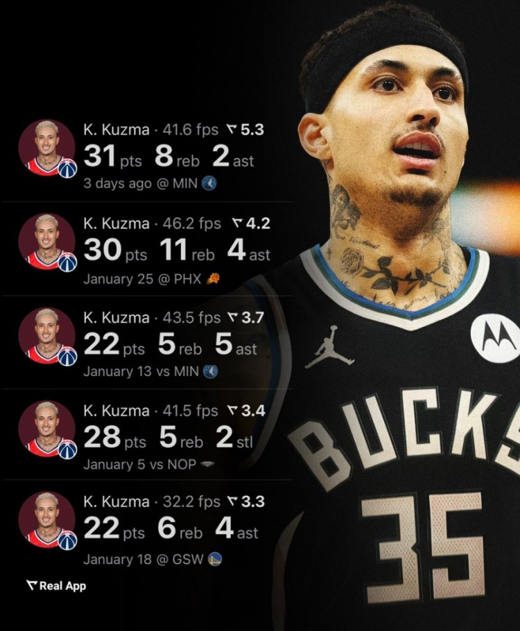 據(jù)統(tǒng)計(jì),本賽季當(dāng)庫(kù)茲馬出戰(zhàn)時(shí)間大于30分鐘時(shí)(13場(chǎng)比賽),他場(chǎng)均能得到21.7分6.4籃板2.4三分,投籃命中率45.4%,三分命中率36%。