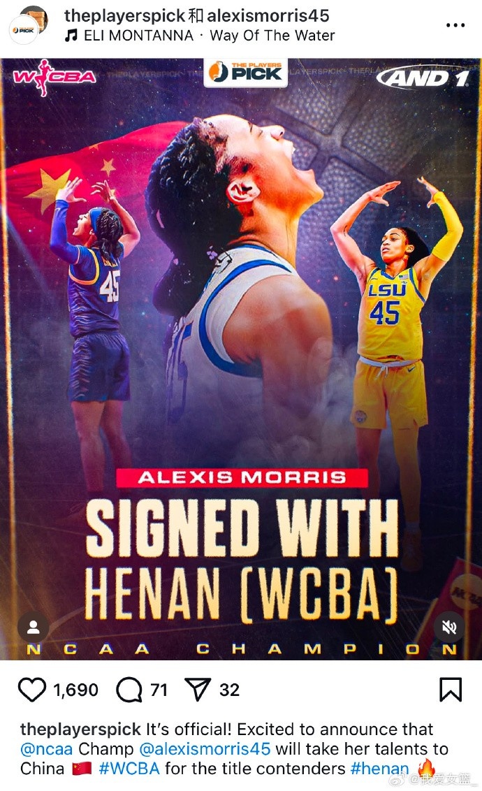 昨天深夜,據(jù)經(jīng)紀(jì)公司ThePlayersPick消息,原路易斯安那州立大學(xué)女籃后衛(wèi)艾里克西斯-莫里斯簽約河南女籃。艾里克西斯身高1米75,今年25歲,曾隨路易斯安那州立大學(xué)女籃奪得2023年NCAA全國冠軍。2023年WNBA選秀總第22順位被康涅狄格太陽隊選中。