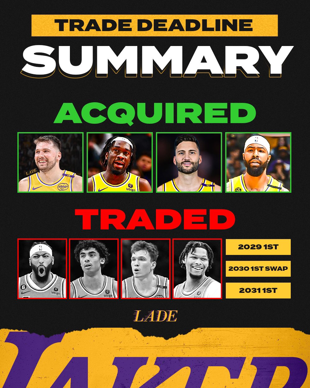 02月07日訊 NBA本賽季交易時間已正式截止。湖人隊記Dan Woike總結(jié)了湖人本賽季的交易情況:送出:拉塞爾、劉易斯、濃眉、克里斯蒂、席菲諾、克內(nèi)克特、雷迪什;29年&31年首輪簽、25年&27年&30年&31年次輪簽;30年首輪互換權(quán)。得到:芬尼-史密斯、米爾頓、東契奇、馬基夫-莫里斯、克萊伯、馬克-威廉姆斯。 本文標(biāo)簽: 籃球 NBA 湖人 詹姆斯 戴維斯 東契奇