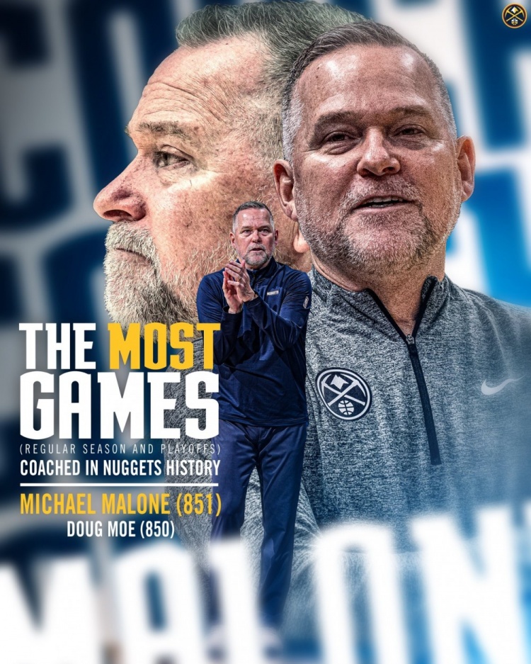 2月8日訊 昨天NBA常規(guī)賽,掘金112-90戰(zhàn)勝魔術(shù)。今天掘金官方更推顯示,主帥邁克-馬龍執(zhí)教場數(shù)來到了851場(常規(guī)賽+季后賽),超越道格-莫(850場)升至掘金隊史第一。勘誤:小編誤將“執(zhí)教場數(shù)”看成“勝場”,現(xiàn)已改正,感謝吧友指出。 本文標(biāo)簽: 籃球 NBA 掘金