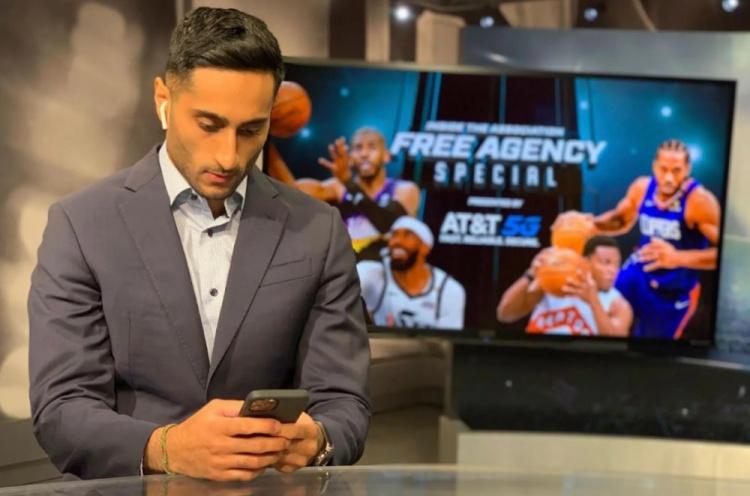 一陣響亮的鈴聲過后,沙姆斯-查拉尼亞(Shams Charania)第9次放下手中的面包片,為了避免滿手果醬弄臟屏幕,他用小拇指打字,回復(fù)某位NBA總經(jīng)理的消息。