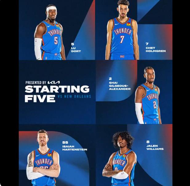 雷霆首發(fā):亞歷山大、多特、杰倫威、切特、哈爾滕施泰因。
