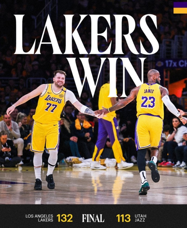 2月11日訊 NBA常規(guī)賽,湖人主場(chǎng)132-113大勝爵士,豪取六連勝。賽后,詹姆斯和東契奇同時(shí)登上湖人官方的贏球海報(bào),官方寫道:“六連勝啦。” 本文標(biāo)簽: NBA 籃球 湖人 詹姆斯 東契奇