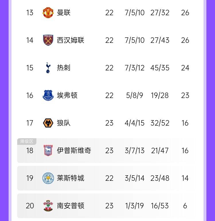 01月26日訊 英超第23輪,埃弗頓客場1-0力克布萊頓,連斬熱刺海鷗的太妃糖近2輪拿6分暫列英超第16。目前埃弗頓已經(jīng)領(lǐng)先英超第17名狼隊多達7分,保級形勢很樂觀。因此,今年的降級3隊很有可能就是在3支升班馬和狼隊之間誕生——4選3。值得一提的是,埃弗頓是在換帥之后取得的連勝,莫耶斯回歸埃弗頓已執(zhí)教3場英超,分別是負維拉,勝熱刺&布萊頓。 本文標簽: 足球 英超 熱刺 埃弗頓 布萊頓 狼隊 伊普斯維奇 南安普頓 萊斯特城