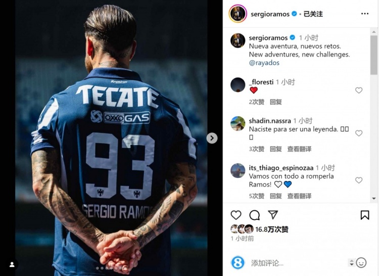 2月12日訊 38歲西班牙中衛(wèi)拉莫斯更新社媒動(dòng)態(tài),曬出身穿蒙特雷球衣的背影照片。拉莫斯自由身加盟墨西哥俱樂(lè)部蒙特雷,為紀(jì)念歐冠決賽絕平進(jìn)球,他選擇身穿93號(hào)球衣。拉莫斯社媒曬出身穿蒙特雷93號(hào)球衣的背影照片,配文:“新的冒險(xiǎn),新的挑戰(zhàn)。” 本文標(biāo)簽: 足球 西甲 皇家馬德里