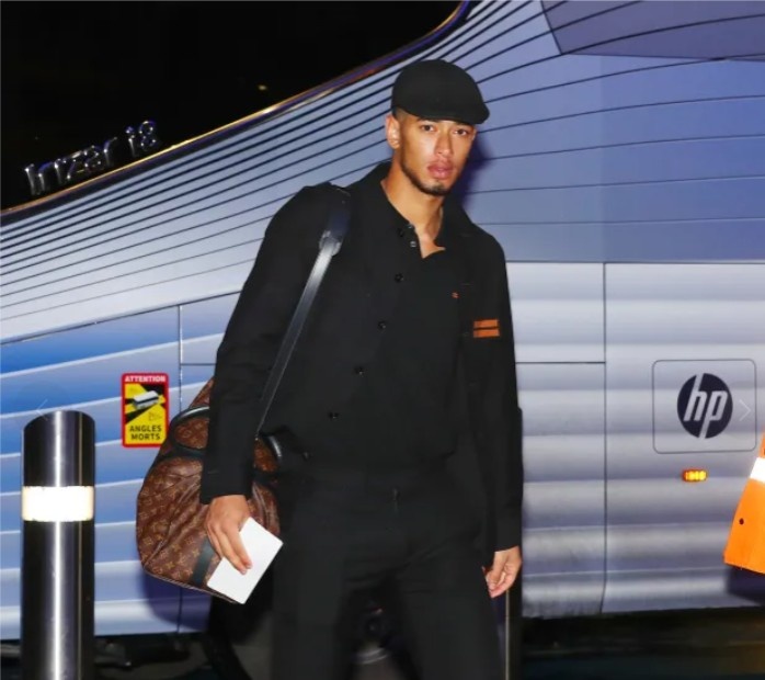 當?shù)貢r間周二晚間,貝林厄姆隨皇馬全隊一起飛回馬德里,陪同英格蘭國腳一起登機的有他的母親和女友。貝林厄姆頭戴一頂黑色平頂帽,搭配黑色夾克和襯衫,以及一只售價超過2000英鎊的LV單肩包。
