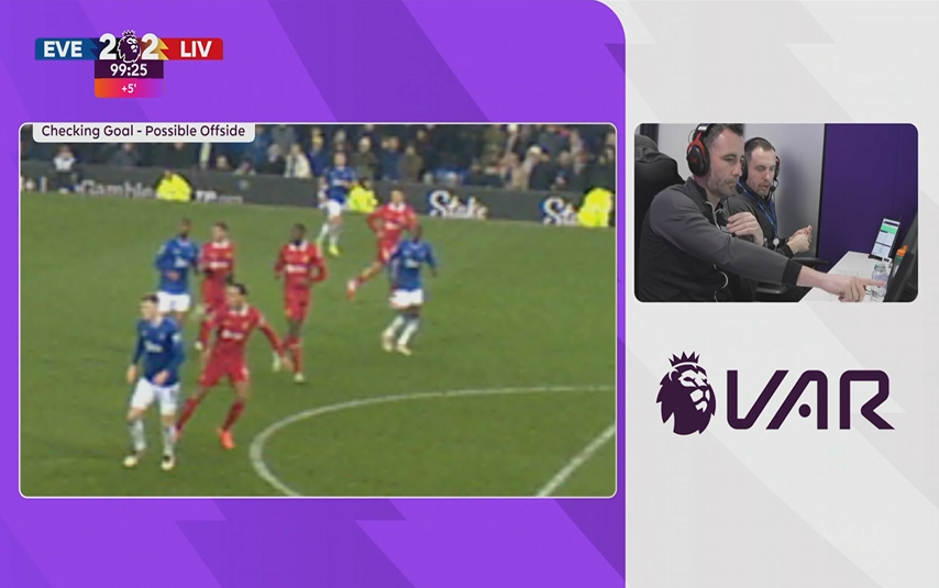 2月13日訊 英超第15輪補賽,利物浦vs埃弗頓。比賽第98分鐘,塔科夫斯基讀秒破門,埃弗頓2-2利物浦!VAR確認進球有效!