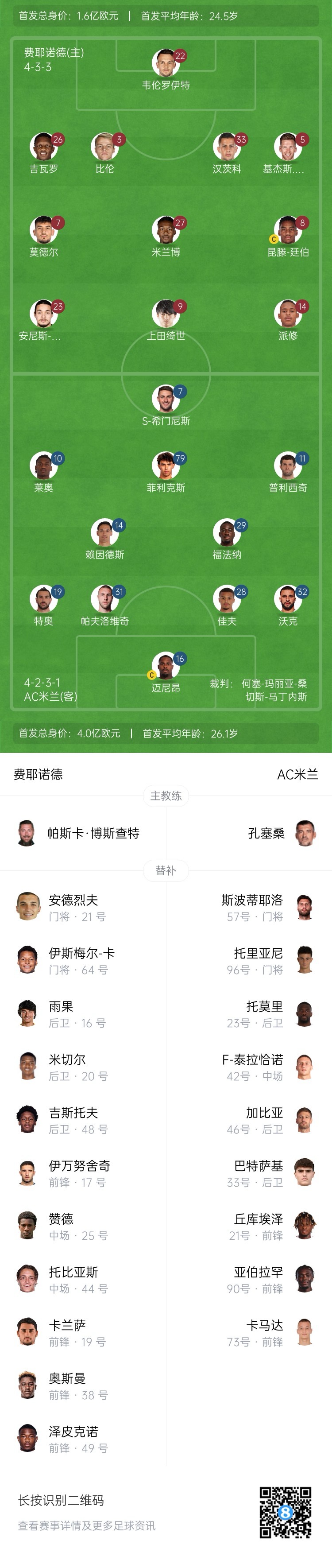 2月13日訊 歐冠淘汰賽附加賽首回合,費耶諾德主場迎戰(zhàn)米蘭比賽即將打響。賽前首發(fā)出爐。