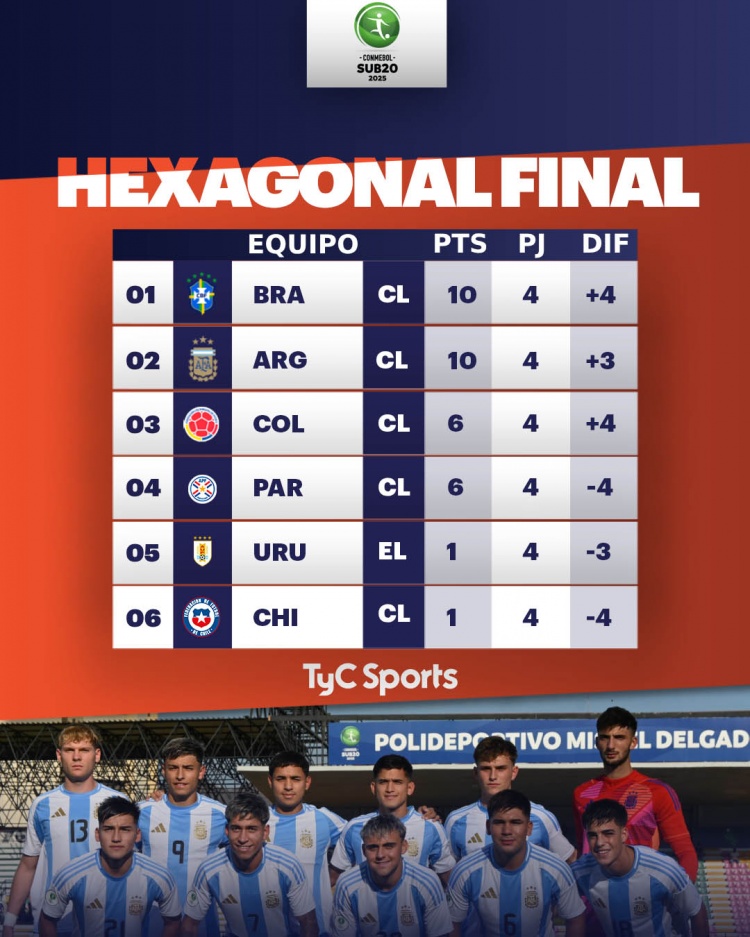 本輪另外兩場比賽,巴拉圭1-0擊敗烏拉圭,哥倫比亞3-1擊敗智利,哥倫比亞和巴拉圭同積6分,兩隊(duì)也鎖定了今年智利U20世界杯的參賽資格。而烏拉圭排名倒數(shù)第二,已無緣U20世界杯。