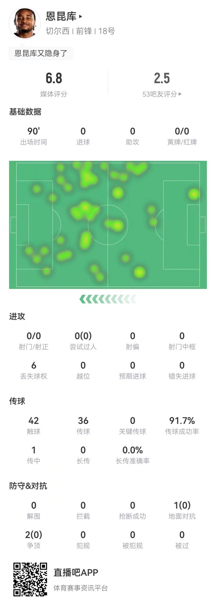 2月15日訊 切爾西在本輪英超0-3不敵布萊頓,恩昆庫本場客串中鋒數(shù)據(jù)如下:首發(fā)踢滿全場0射門0過人42觸球36傳球、33成功,成功率92%0關(guān)鍵傳球1傳中、0成功0長傳3對抗、0成功6丟失球權(quán)獲評6.8分 本文標簽: 足球 英超 切爾西 布萊頓