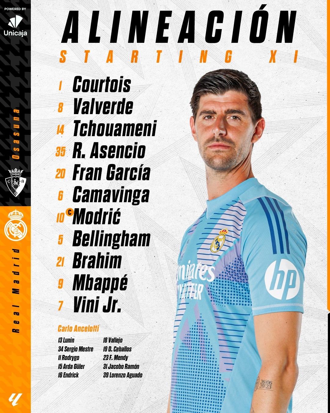 2月15日訊 北京時間23點15分,西甲第24輪,奧薩蘇納vs皇馬,賽前首發(fā)公布。