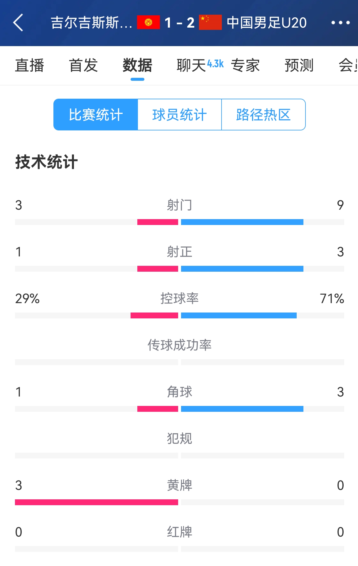 02月15日訊 上半場(chǎng)結(jié)束,國(guó)青2-1領(lǐng)先吉爾吉斯斯坦,在數(shù)據(jù)上中國(guó)國(guó)青全面領(lǐng)先對(duì)手。 本文標(biāo)簽: 足球 中國(guó)足球 中超 國(guó)家隊(duì) 中國(guó)男足