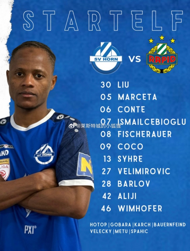 熱身賽SV霍恩1-0維也納快速二隊(duì),中國門將劉邵子洋首發(fā)出戰(zhàn)。