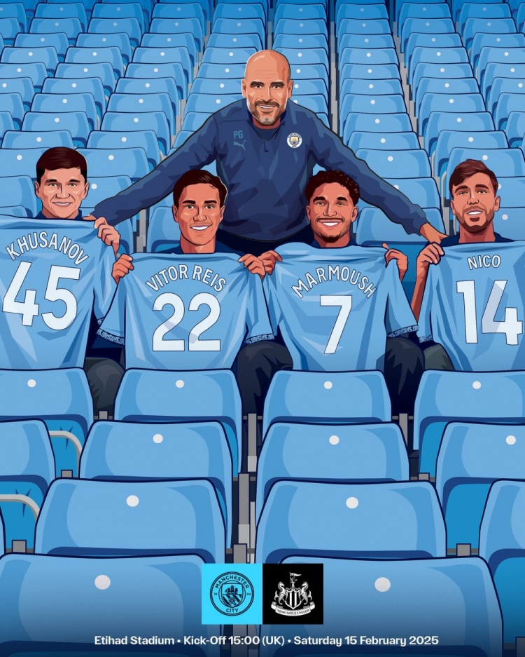 2月15日訊 北京時間今天晚上23點,曼城將在英超第25輪比賽中主場對陣紐卡。曼城官方發(fā)布了為此役制作的海報,主帥瓜迪奧拉帶領胡桑諾夫、雷斯、馬爾穆什、尼科-岡薩雷斯四位新援的漫畫形象出鏡。曼城英超近11次對陣紐卡保持不敗,戰(zhàn)績8勝3平。 本文標簽: 足球 英超 曼城