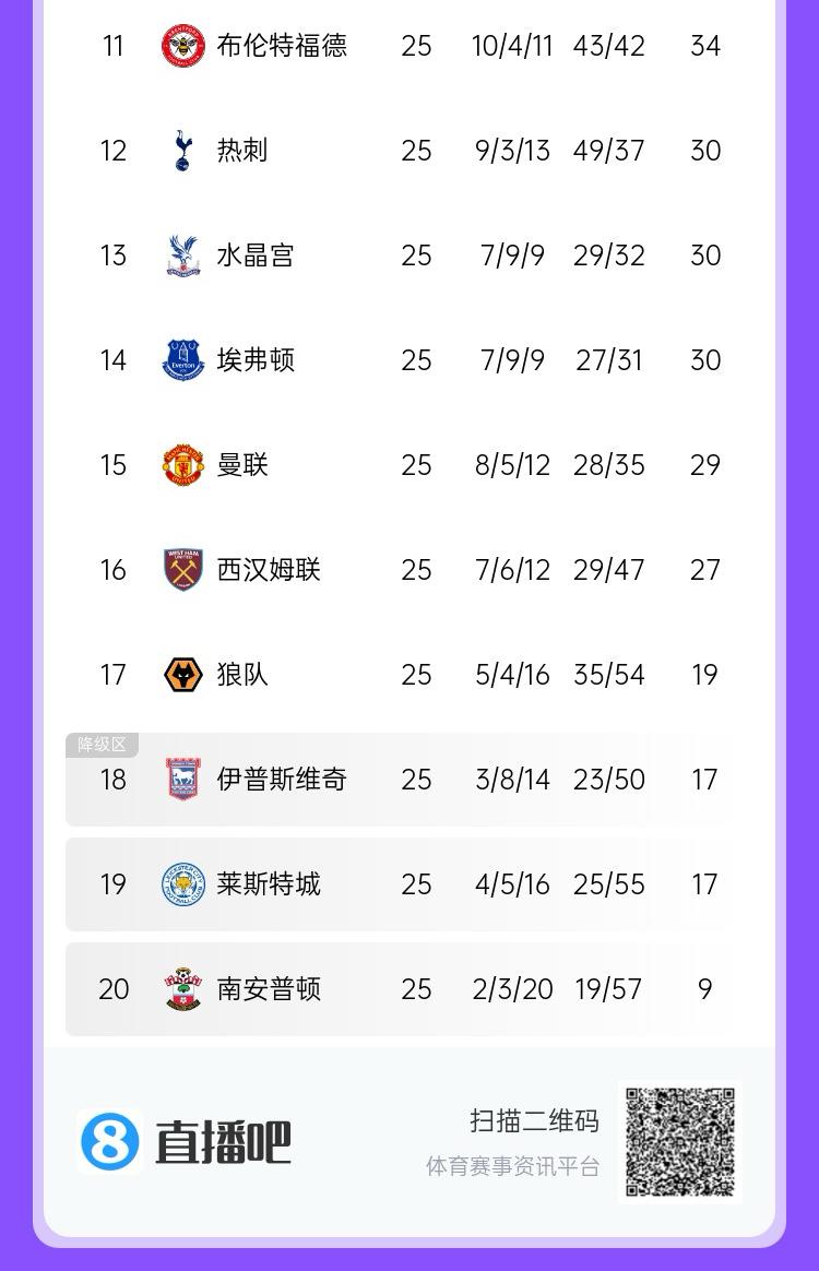 02月17日訊 英超第25輪,曼聯(lián)0-1不敵熱刺。聯(lián)賽前25場,曼聯(lián)8勝5平12負(fù),打進(jìn)28球丟了35球,凈勝球已低至-7球。上賽季,曼聯(lián)最終在英超打進(jìn)57球丟58球,以-1凈勝球收官。 本文標(biāo)簽: 足球 英超 曼聯(lián)